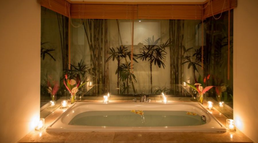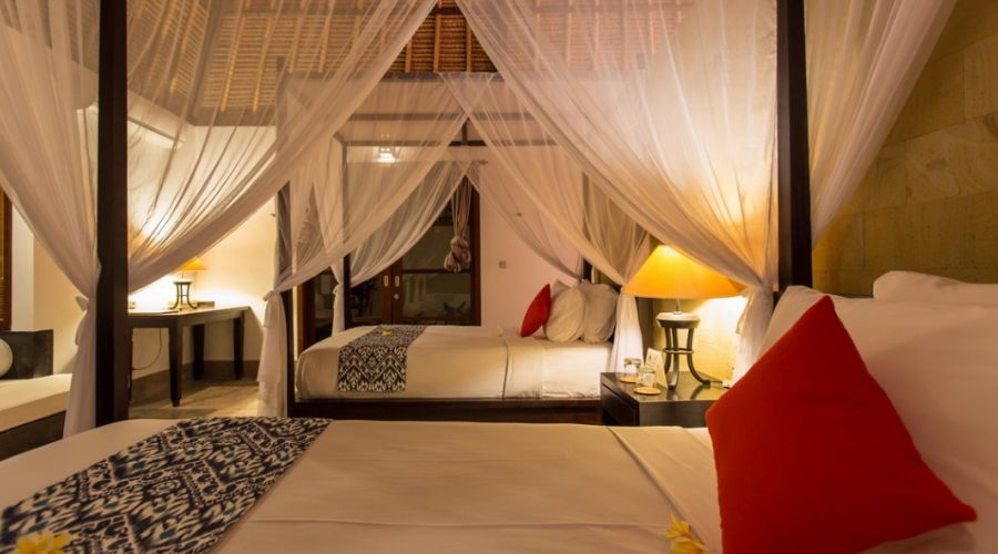 Each of room equipped with 32” LCD Television with International Channel. Except Master Bedroom, others bedroom has their own plunge pool just cross their door. Master Bedroom itself has own separate living room. En-suite bathroom is available with hot and cold water for every bedroom. Each of bathroom in the villa equipped with Bathtub. The Master Bedroom is using Double King Size Bed. Rest of bedroom is using 2 Single King Size Bed with mosquito net. High Speed Wi-Fi Connection is always available in every single inch of the villa