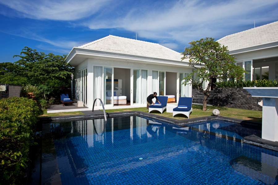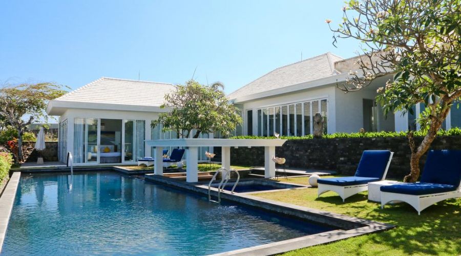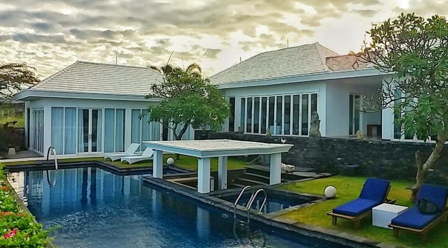The villa is a mere 30 minute drive from the international airport and is part of the Karang Kembar Estate in the Bukit on the southern tip of Bali.