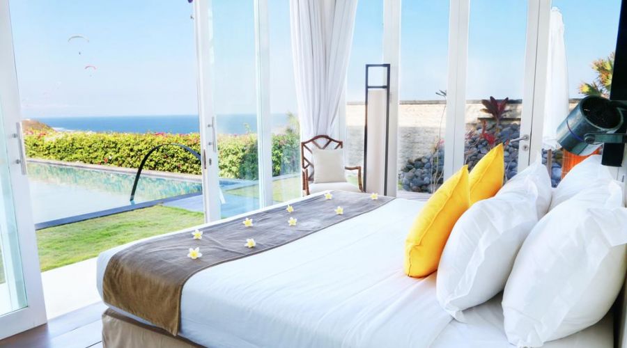 The luxurious 4 bedroom villa has a stunning view of Bali's most spectacular strip of coastline and is nearby The Bali Golf & Country Club, which is recognized as one of Asia's five best golf courses.