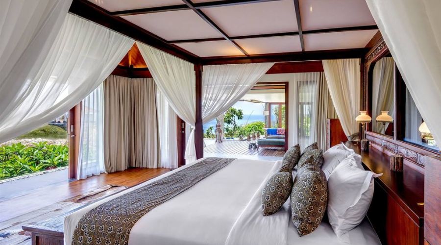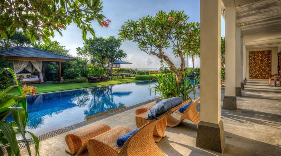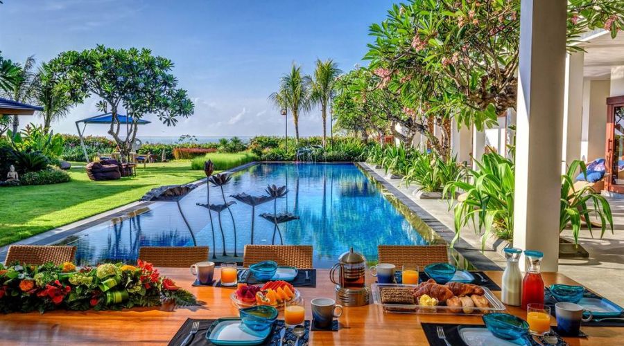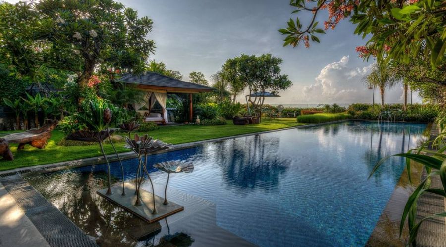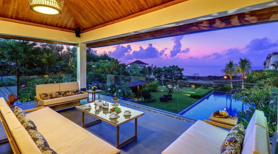 The villa is a sprawling tropical lifestyle mansion with 5 suites and studios on the cliff front of Bukit Pandawa. Its private and beautiful garden setting contrasts with the rugged cliff edge in front of the villa, which rises 90 meters above the Indian Ocean. The cliff edge, besides incredible views over Pandawa Beach and the Indian Ocean, is the setting of a 300 year old temple, featuring a spiritual gate to the south over a break in the reef below. This wonderful feature is a must to visit and photograph.