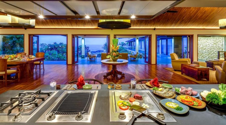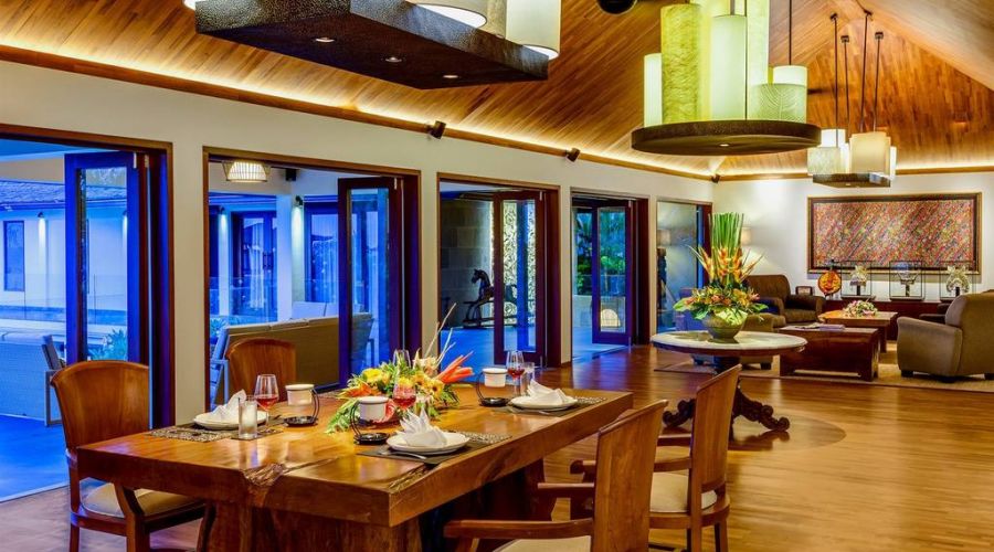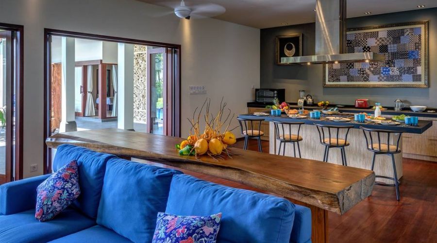 The villa features two very large and attractive Living and Dining areas; the Living and Dining room on the upper level, where the Master Suite is located and the Pool Open Living, which could be combined with the Pool Suite. Each level has its own kitchen and dining areas which makes a stay in the villa highly versatile.