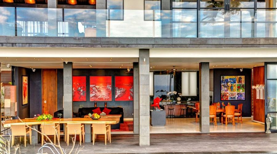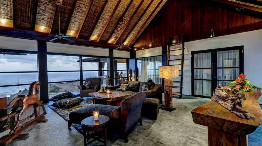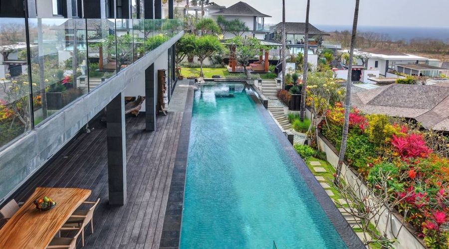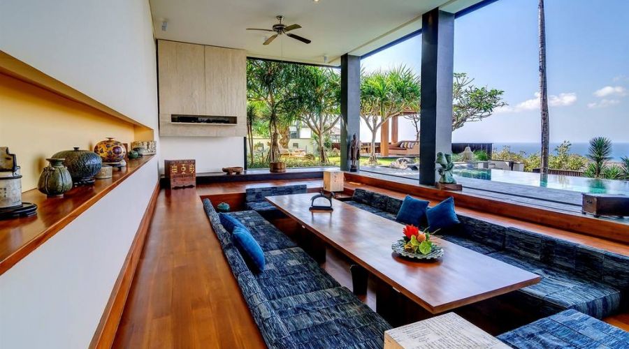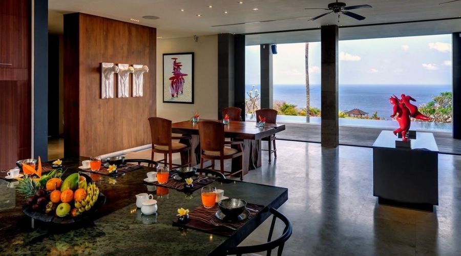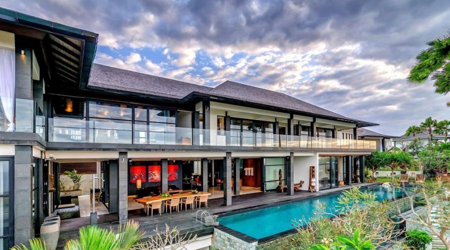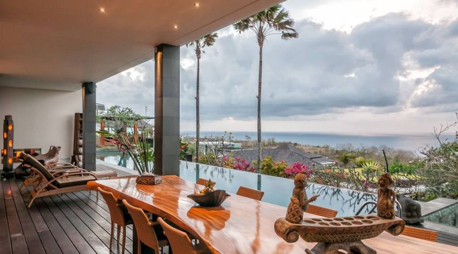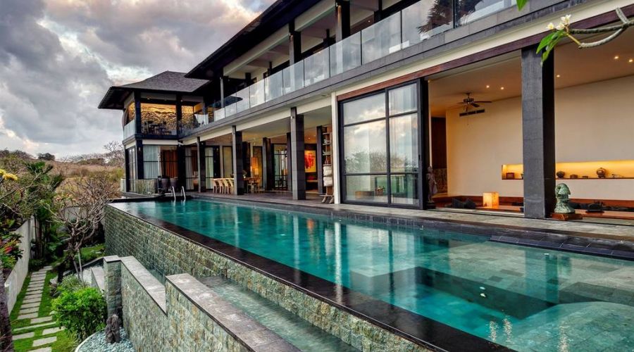 The villa is a very large contemporary cliff top luxury lifestyle villa featuring 6 suites and studios, an infinity edge pool and panoramic ocean views. Its dynamic and defining architecture compliments a spectacular 180 degree view over the ocean, just 90 metres below Bukit Pandawa.