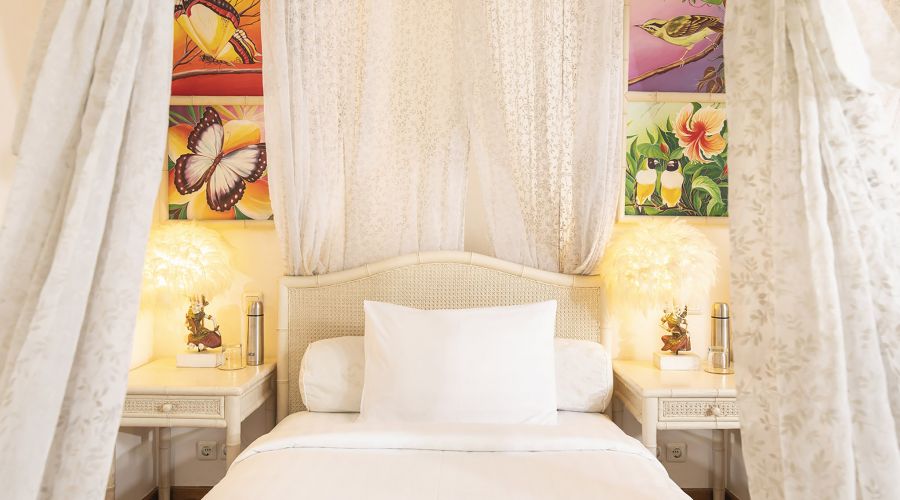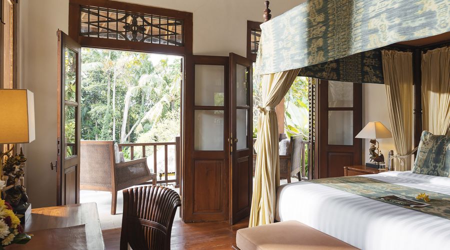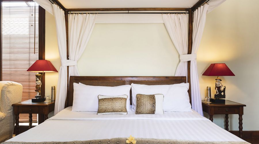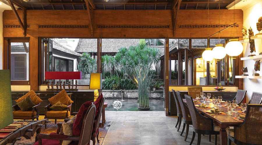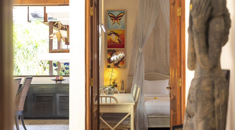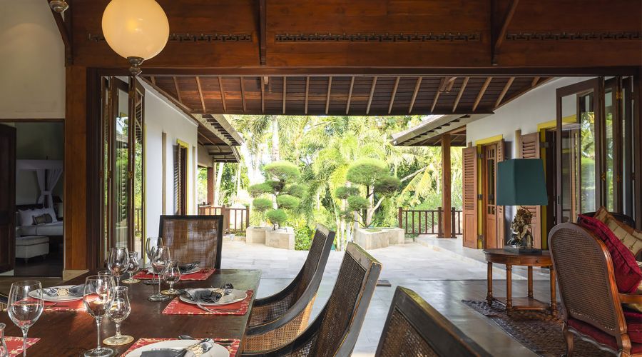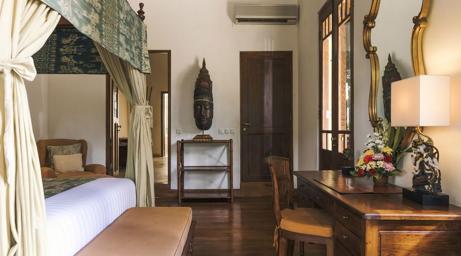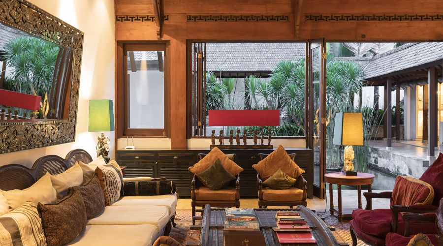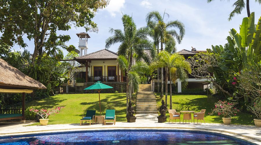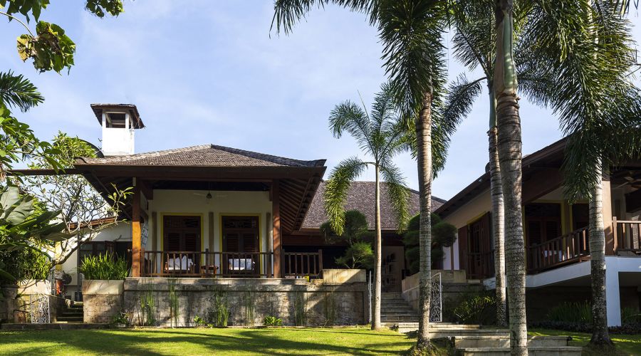 The original colonial design for this villa owes much to the architecture of traditional Javanese plantation houses with the high, wooden-strutted ceilings of the villa's central hall taking their inspiration from an old college in Bandung, West Java. The majestic design also incorporates the use of wide eaves and combined with the elevated position of the land, this allow for the beautiful breezes and a flooding of natural light.