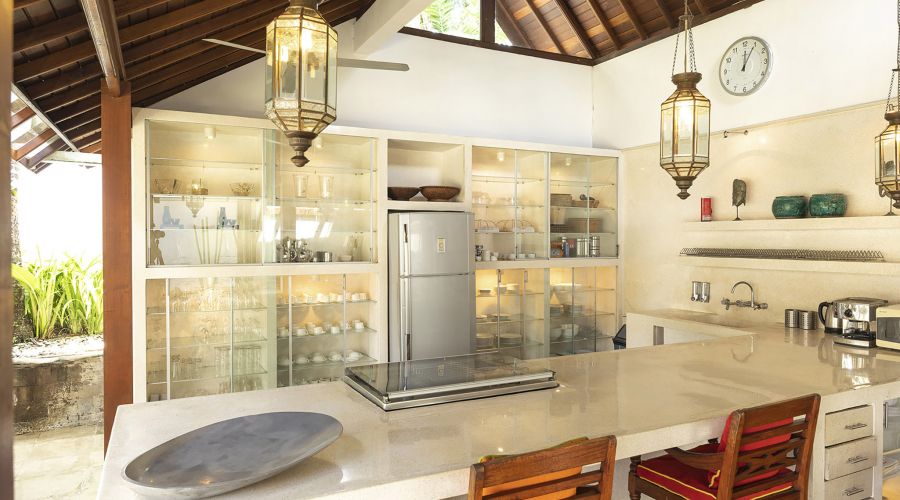 Comfort and relaxation are the focus of the villa's plush interiors and furnishings feature oversized sofas, daybeds, poolside loungers and plenty of cushions, so guests will always find a private place for peace and quiet. In addition to the many indoor and outdoor lounge spaces, guests have the choice of three dining areas, all of which present a unique ambiance.