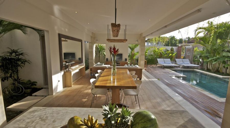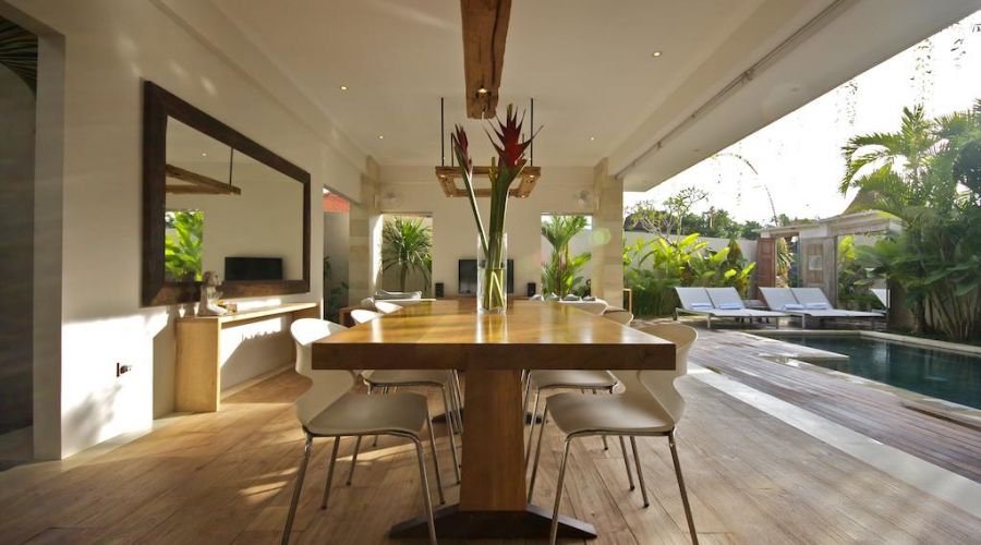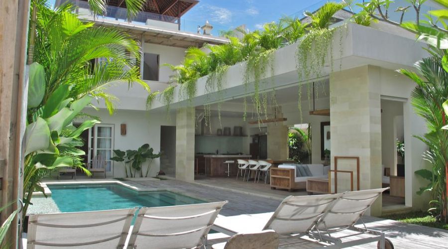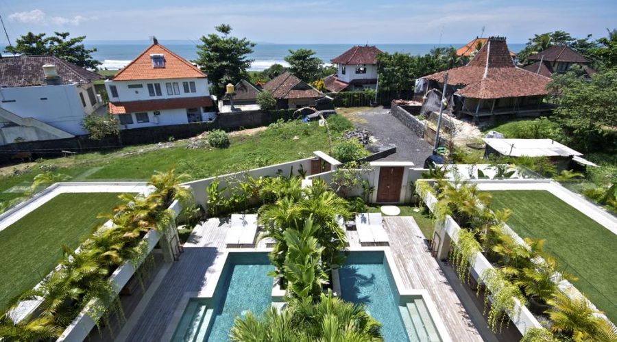 10 minutes walk along the beach to the restaurants of Echo Beach, this 4 bedrooms villa plus a kids room is one of the few villas in Bali that enjoys views of the ocean, volcanoes, sunrise, and sunsets.