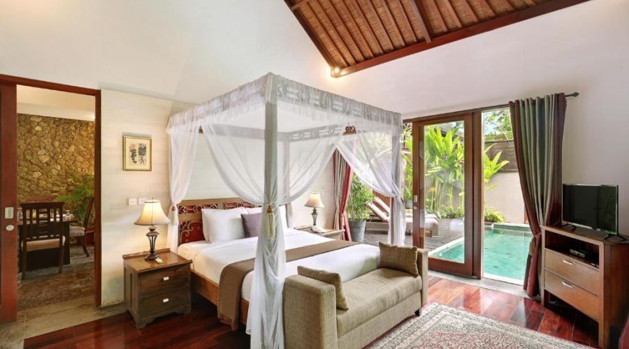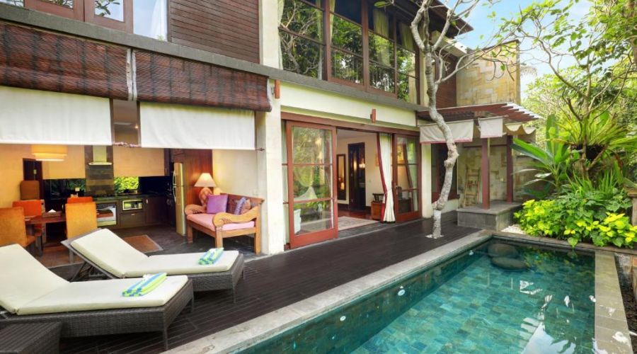 This villa provides private swimming pool, sundeck and loungers, living room with 42 inch LCD TV plus DVD/VCD/CD player, 29 inch flat TV in the bedroom, fully equipped kitchenette, dining area, wireless broadband internet connection, IDD telephone, minibar, safety deposit box, tea and coffee making facilities and hairdryer. The bedroom is spacious and equipped with a king-size King Coil bed, en-suite bathroom as well as a magnificent view of Jimbaran Bay.