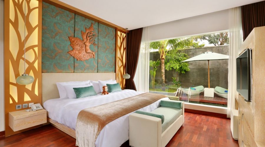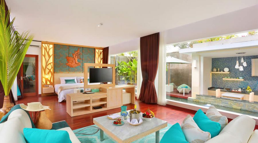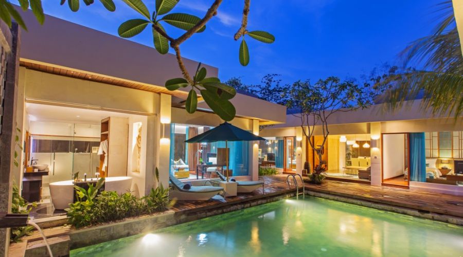 The 40 spacious private pool villas and 10 Deluxe rooms all embrace our own quiet bay on Bali’s sophisticated and natural coastline, just 20 minutes from Bali Airport.