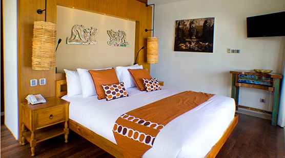 Textured wood and natural stones root this lavish villa firmly in the earth. The villa comprises four king-sized suites complete with individual expansive bathrooms and private ocean-view balconies.