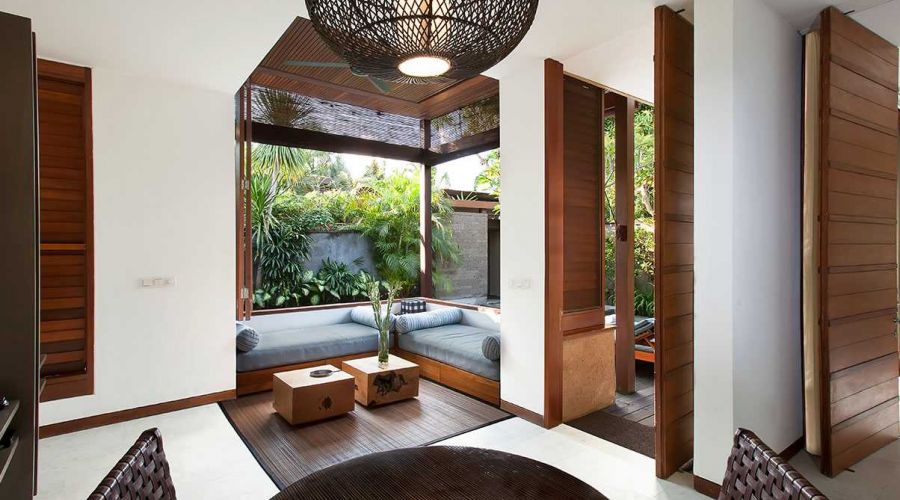 Presenting a refined blend of traditional Balinese architecture with modern clean lines, this villa offers both the facilities and service of a resort as well as the privacy of a secluded luxury villa retreat. The dominant architectural and design theme is the sense of openness created by oversized wood framed windows and doors. Doors slide to reveal rooms and windows unfold to form new spaces.