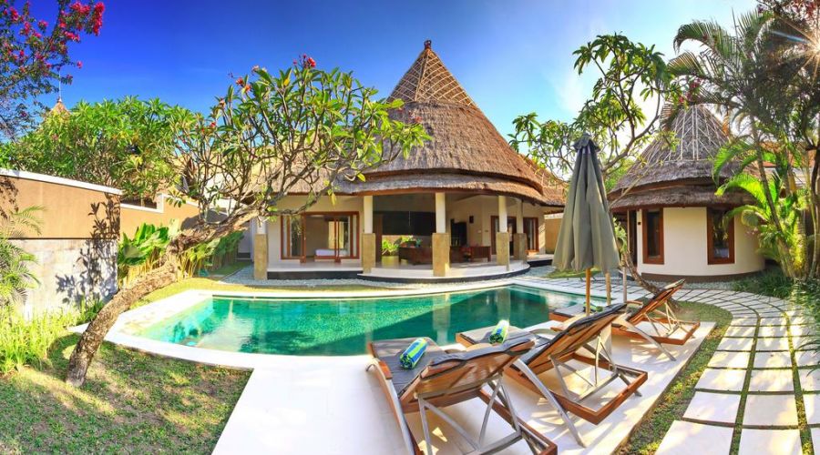 - Private swimming pool and garden in each villa