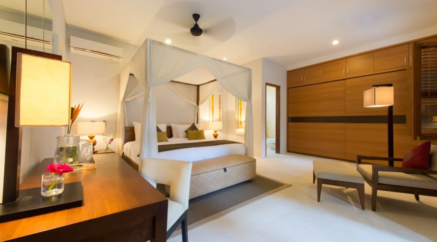 The villa combines the beauty of traditional Balinese architecture with incredible levels of comfort and amenity. The aesthetic beauty of teak wood finishing, thatched and shingle roofs beside breathtaking landscaped gardens in entirely private, inward facing properties sit comfortably alongside the air-conditioned luxury of the large sitting/dining rooms and the beautiful, wonderfully relaxing bedroom suites, each of which benefit from a gorgeous en-suite bathroom, spacious wardrobes and an outdoor seating area, ideal for quiet contemplation.