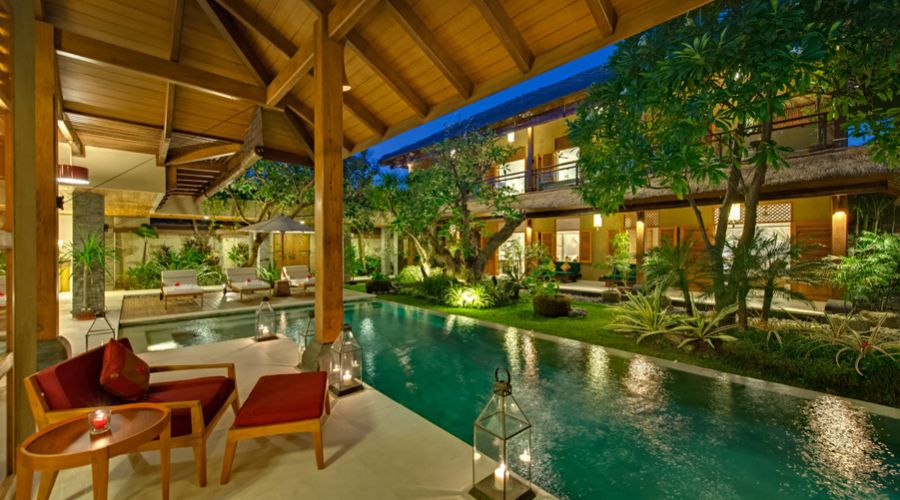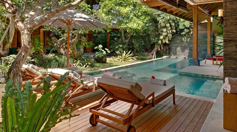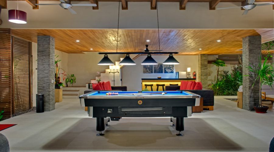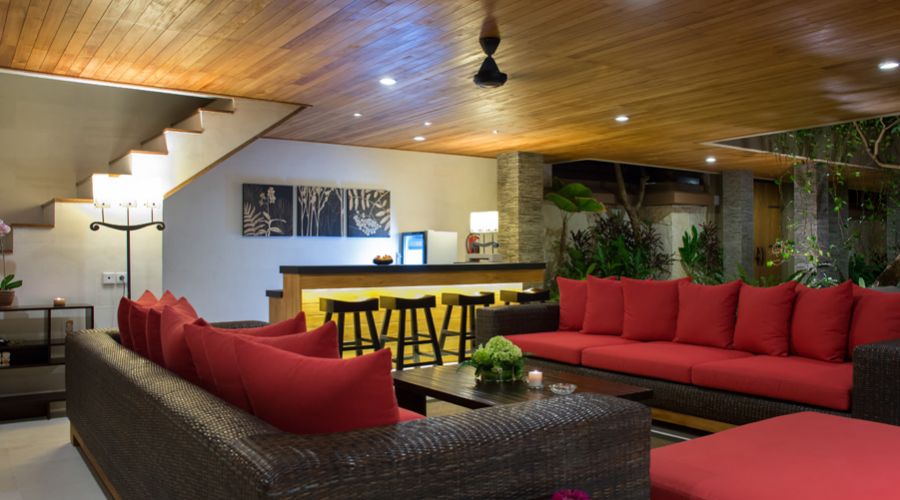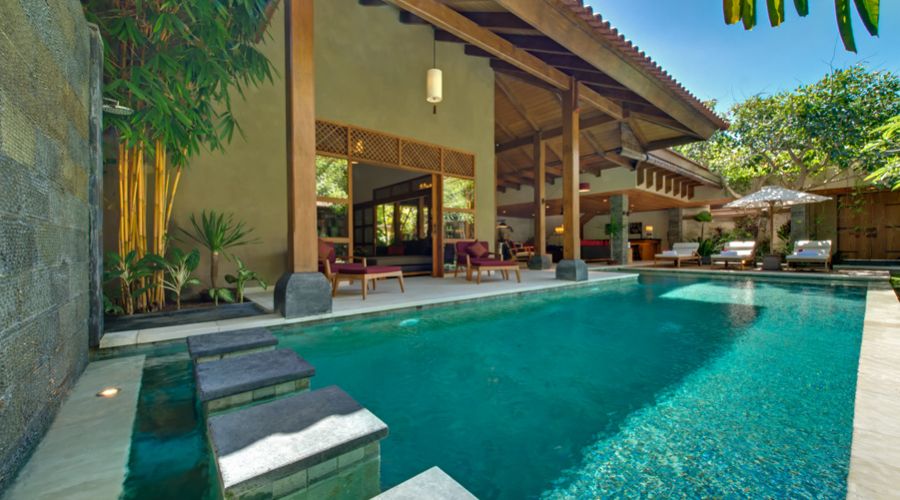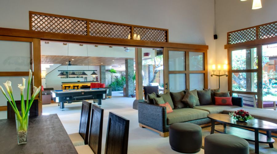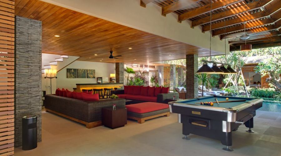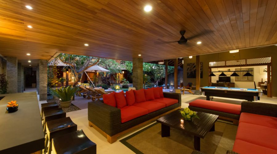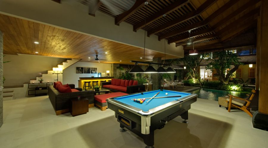 In Bali, however, a villa is truly defined by its outdoor areas. The villa offers stunning, covered outdoor living spaces complete with bar areas, huge, deep sofas and a slate bed pool tables. For sun-worshippers there are sun-loungers and lovely salt water swimming pools framed by waterfalls and pristine gardens.