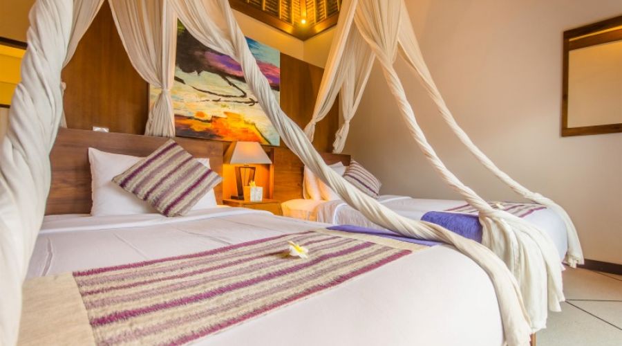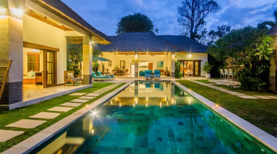 This spacious 6 bedroom villa Seminyak has all the home comforts you’ll need for a relaxing getaway and is just a short walk away from great shopping restaurants, spas and the beach. It is located in a quiet lane but conveniently, only a stroll to everything you will need to make your holiday perfect. The large gardens, 2 swimming pools and open living spaces makes this villa ideal for large groups of families and friends.