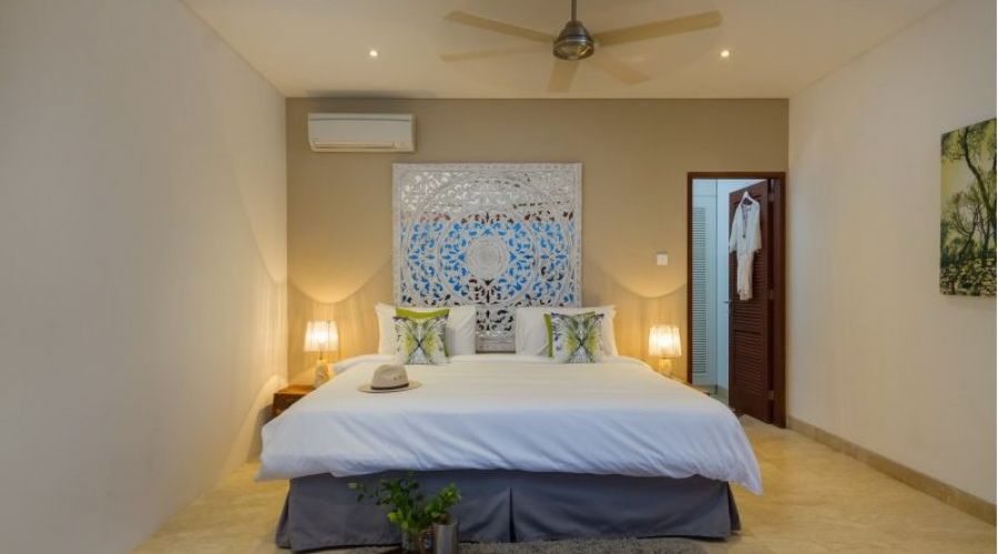 4 bedrooms: You will feel on top of the world in this beautifully designed villa, where from every room your eyes are drawn to the spectacular view of the expansive countryside and the magical Indian Ocean beyond. Enjoy the peaceful, private spaces on your verandah, as well as a place to come together with your friends and family in the living, dining and pool areas. The villa, set in lush tropical gardens, sleeps eight people in two master bedrooms and two twin bedrooms, all with ensuite indoor, outdoor tropical bathrooms and verandahs.
