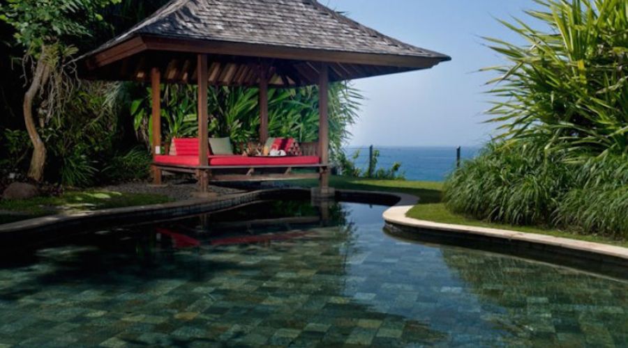 4 bedroom luxury pool villa perched on the cliff-top above Pandawa beach on the Bukit peninsula. It offers guests fabulous villa accommodations in a delightful design which flows on 3 levels down to its cliff-frontage and exceptional panoramic views of the ocean to the endless horizon.
