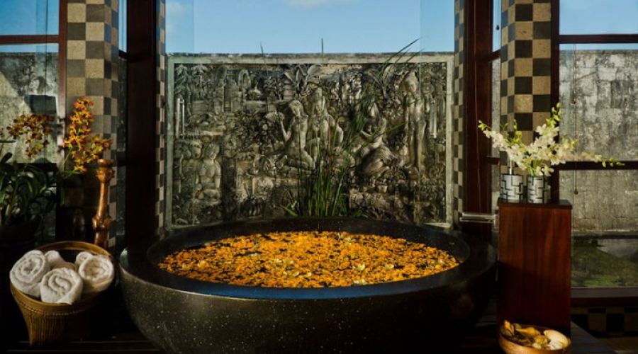 The "Master Suite" is the height of luxury and indulgence for guests. Adjacent to the villa's lounge, dining and entertainment pavilion, a beautiful mural, depicting scenes from the epic and legendary Balinese Ramayana fable, beckons you to this exclusive and private retreat.