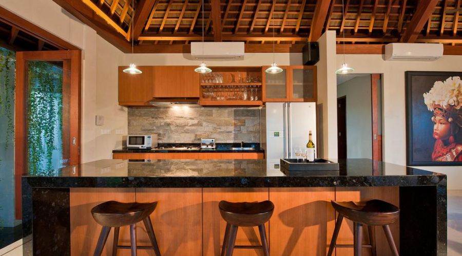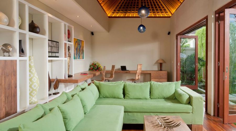The fine art traditions of Bali have been highlighted with care in this villa. Upon entering the main gate, guests are greeted by a stone relief carving of Balinese Gamelan musicians which dates back to the Majapahit Kingdom's retreat from Java to Bali in the 1500's.