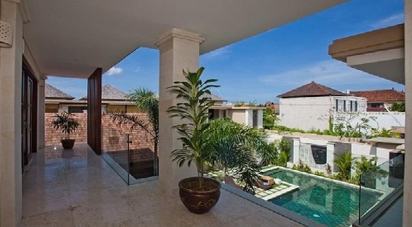 This two-level villa boasts of a modern tropical architecture that mixes classic Balinese design with contemporary pieces. It features a verdant private garden, an L-shaped saltwater pool, a pool deck with sun loungers and large day bed, an open-air lounge, a spacious living room with cable TV and DVD player, outdoor dining pavilion, a fully equipped kitchen and an extensive terrace overlooking the pool and garden.