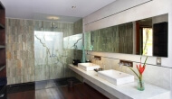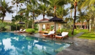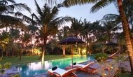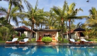 The standalone villa has a semi-open living area fitted with a sofa and safety deposit box overlooking the pool and gardens. Modern and cosy bedrooms are air-conditioned and come with a flat-screen satellite TV, iPod docking station, wardrobe and desk. The en suite bathrooms have a hairdryer, toiletries, shower and bath facilities.