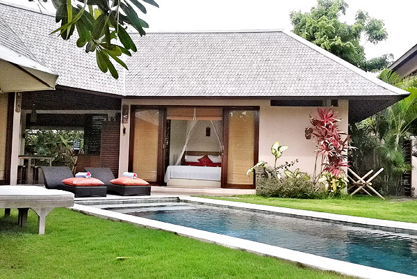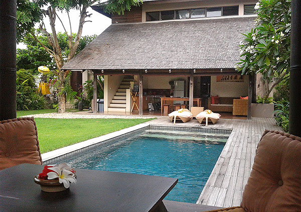 Set amongst tropical gardens on beautiful south Bali, The Villas comprise of two spacious Bali designed villas offering you the holiday of a lifetime! The main villa is 3 bedroom/2 bathroom comforts for 6 people. Boasting a 10m pool kitchen lounge and outdoor deck. And the other one house is a 2 bedroom/2 bathroom dwelling for 4 people with its own 8 m pool.