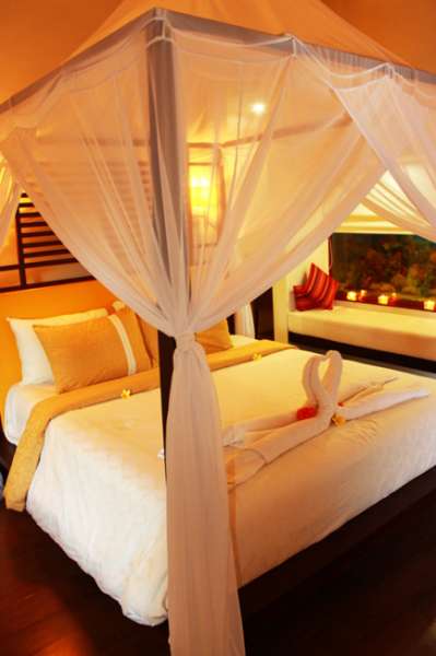 The foyer opens into the dining room and living room areas . The fully modern kitchen is located on the right side of the living room with bar style window to a separate dining area. The two bedrooms are located side by side to the left of the dining/living room. Both bedrooms have indoor showers, cable television and air-conditioning.