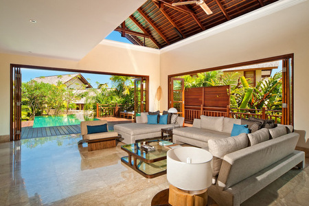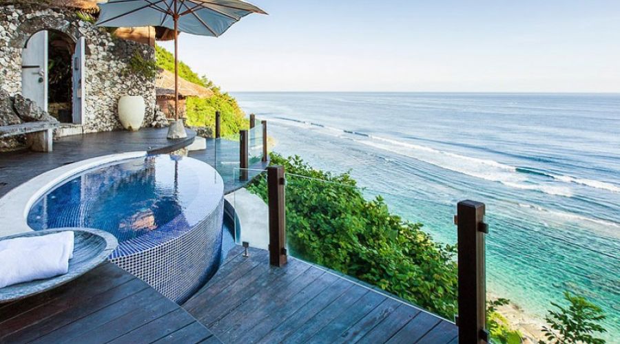 Designer private residence villa located on the premises of Karma Kandara estate that includes private villas and one of the best boutique hotels in Bali, member of The Leading Small Hotels of the World. The property is located on the edge of Bukit peninsula in South Bali, on the side of a 90-meter-high cliff overlooking the Indian ocean and offering unrivalled views, with its own private lagoon surrounded by the coral reefs and a beautiful white sand beach with crystal clear waters suitable for snorkelling or even canoeing.
