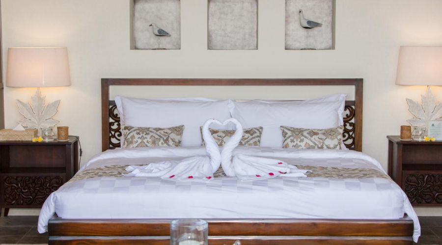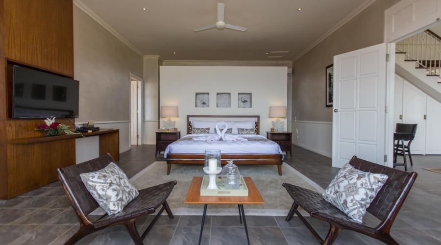 The villas offering spacious bedroom and luxury. Each of bedroom in villa provided with 32” LCD TV with International Channel and en-suite bathroom. The Master Bedroom is in 2nd floor give you breathe taking picturesque of Ocean View from your bedside and bathroom. The 2nd Bedroom located on lower floor, with en-suite bathroom and in room entertainment. You also able to see Ocean View in front of our king size bed. The 3rd Bedroom located near entrance, this bedroom using 2 units of Single King Size bed.
