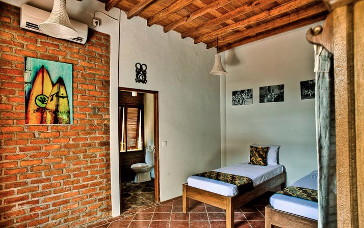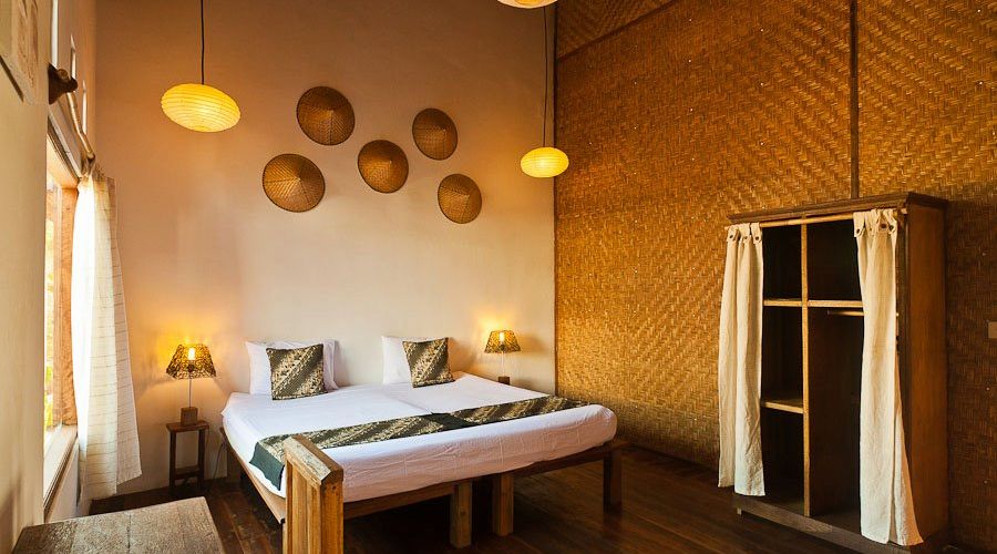 Featuring a private balcony open out to tropical views, the air-conditioned rooms have wood-beamed ceilings and craftwork.