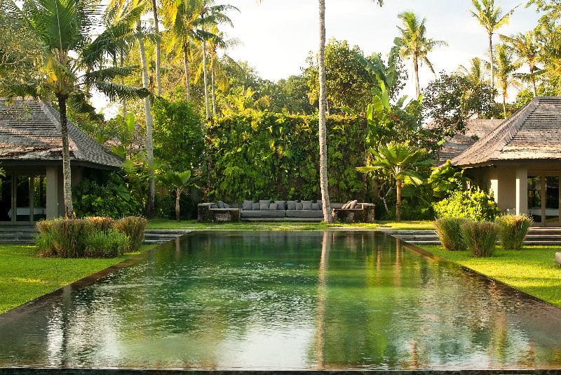 This sleek and sophisticated five-bedroom villa on Bali’s south-west coast is the epitome of cool, featuring polished black surfaces, meticulous symmetrical lines and a stunning array of Asian antiquities. Privately enclosed within a spacious walled garden abundant with palm trees and tropical plants, the bedrooms and living areas are arranged around a sparkling 18-metre river-stone swimming pool, which forms the centerpiece to this luxurious villa, all just a minutes walk from the charming traditional Balinese village of Seseh and its rugged surf beach. With its dramatic interiors and grand sense of space, this villa is the perfect venue for holding a special event, whether it be an intimate gathering or a more lavish celebration.