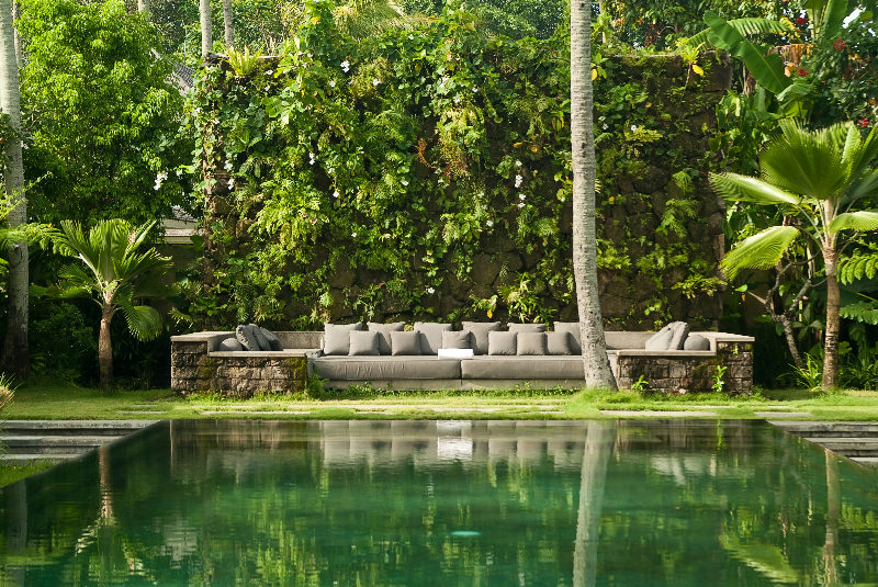 Super sleek and sexy, but fabulously comfortable, this villa would not be out of place in one of the world’s fashion capitals, yet this impressive five-bedroom villa is located in the beautiful and very traditional Balinese village of Seseh, just a stone’s throw from the beach. The property is owned by a Spanish model and a fashion designer and their sense of style and sophistication shines throughout the villa, from the fabulous black interiors to the incredible array of Asian antiquities. There are seemingly endless opportunities for relaxation: recline under a parasol on a daybed fit for royalty; sip sunset cocktails on the party-size sofas by the pool; chill out in the comfortable garden balé with friends, or simply take a moment to rest and rejuvenate in peace on your private bedroom balcony.