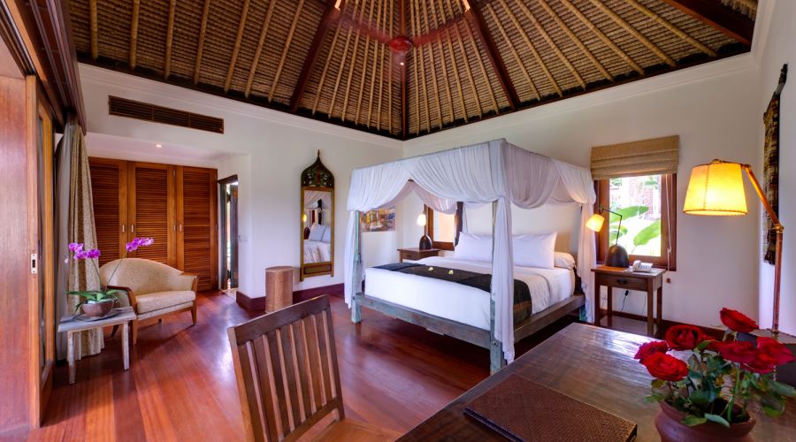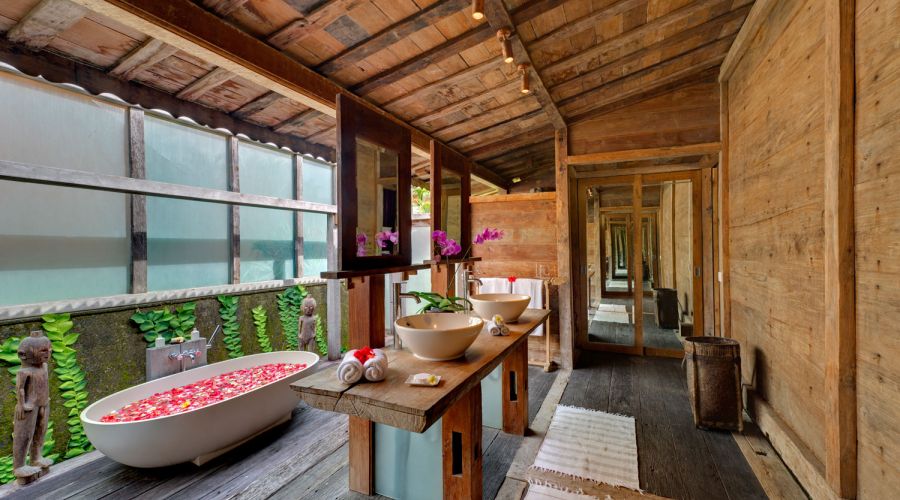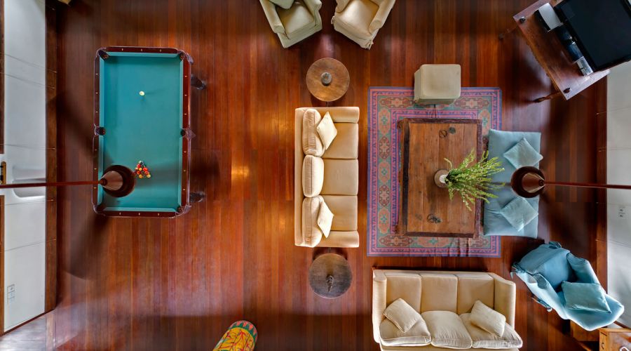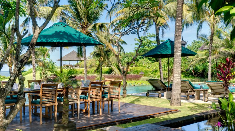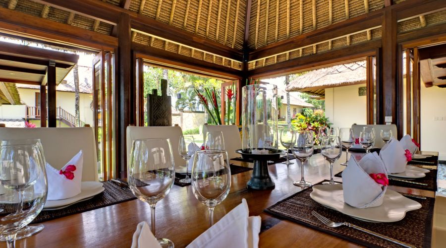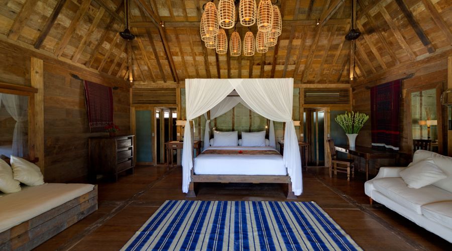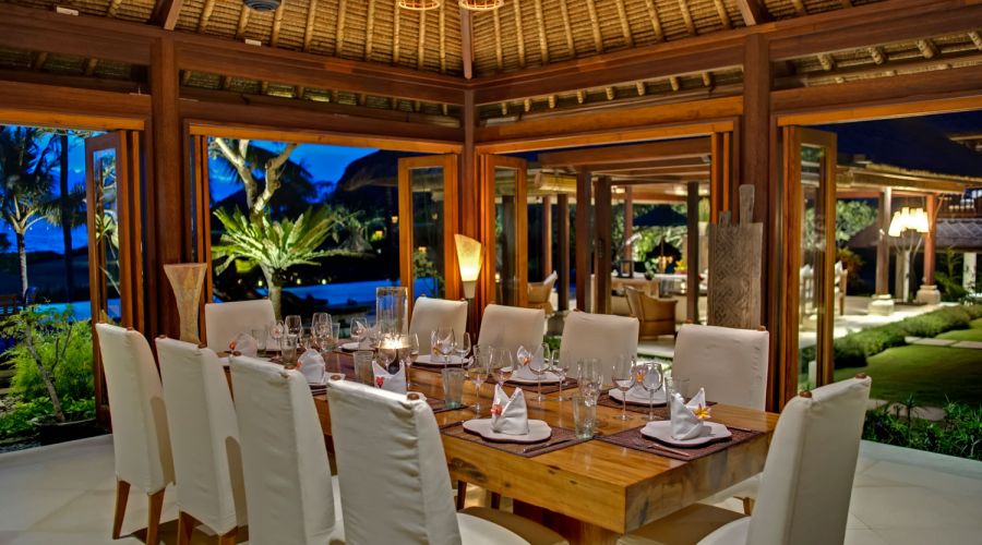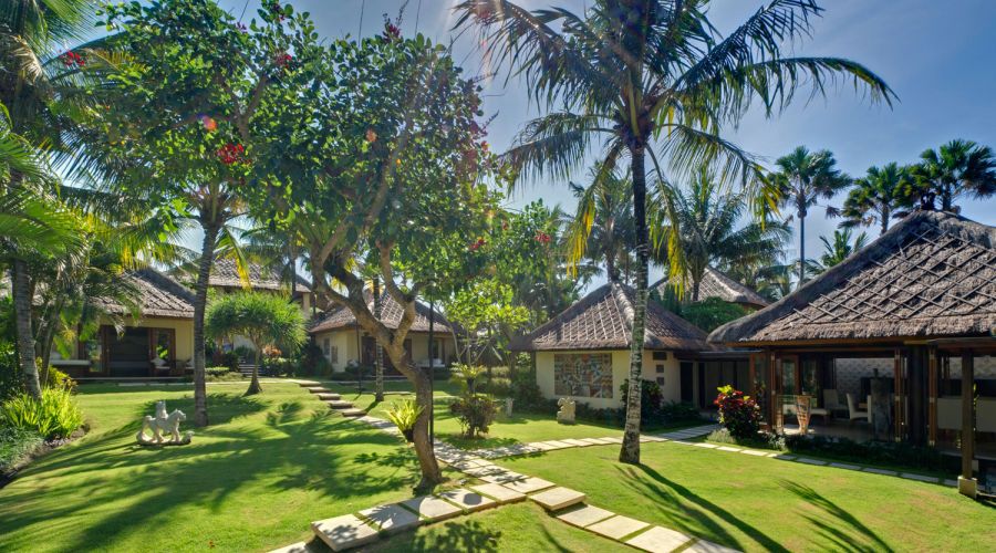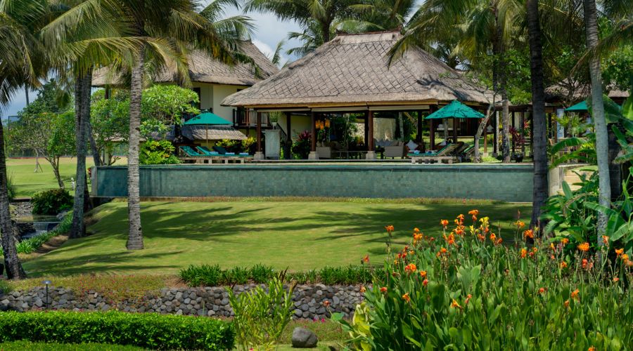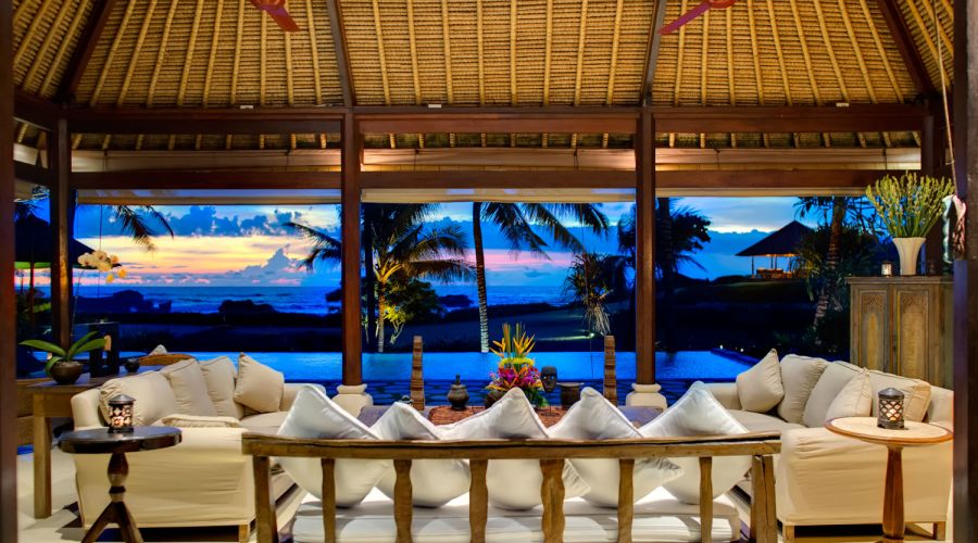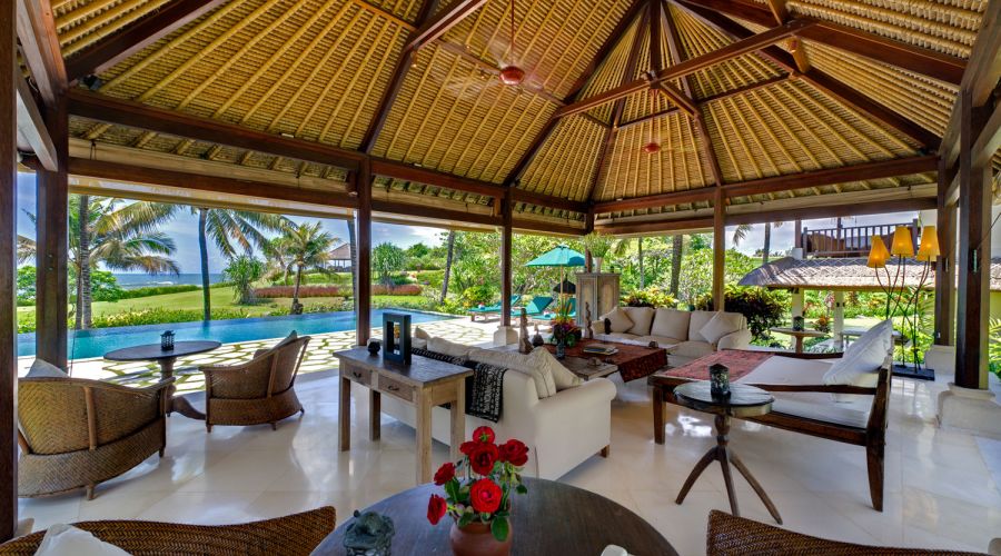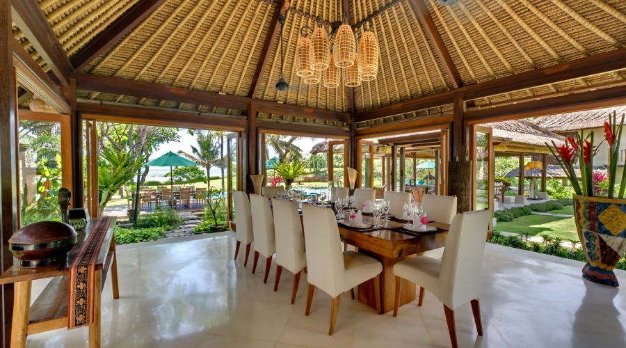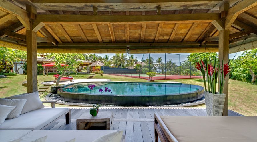 - Living areas: Open-sided living pavilion; dining room; games room; sunset balé
