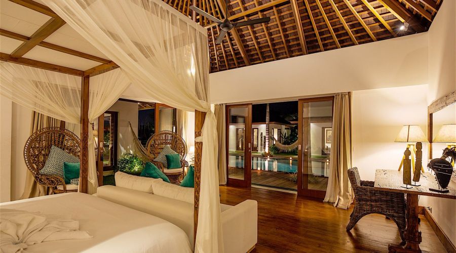 Set around the dazzling swimming pool, each bedroom takes the shape of a private bungalow, providing the perfect balance between group moments and intimate, personal space. Elegantly decorated, with all the comforts required to shelter your dreams. Each room offers an en-suite dressing as well as a semi-open private bathroom.