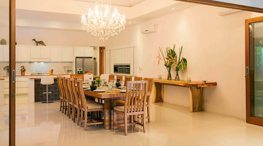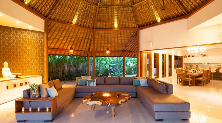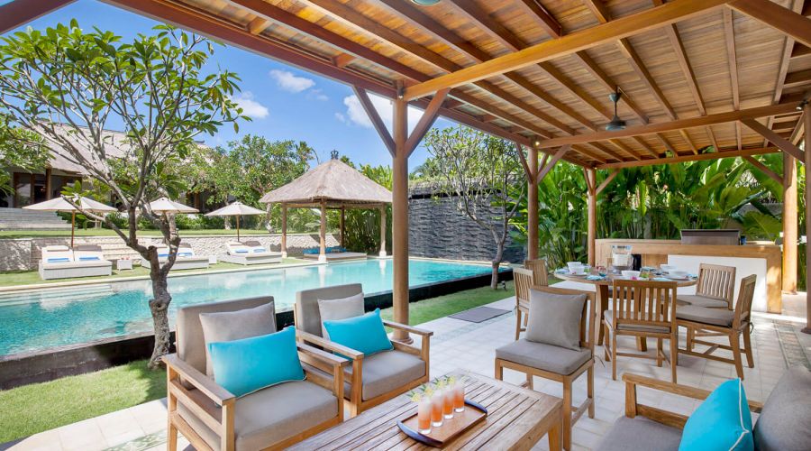 The villa boasts 6 luxury bedrooms – 5 King Suites (3 with internal bathrooms & 2 with beautiful outdoor bathrooms), plus 1 room with twin single beds. The villa sleeps 12 people as a standard configuration, although an additional 3 king single beds can be added, as required, for groups of up to 15 people.