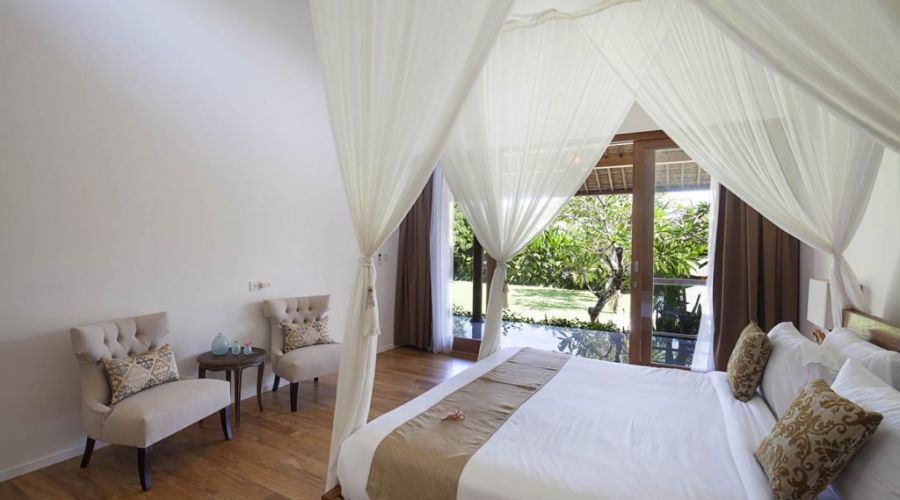 With its 18m pool, separate BBQ area, TV room, library, massage spa & gym, it offers many wonderful spaces, nestled in every area of the estate, where you can sit, relax or mingle as the mood takes you. It’s an amazing place to just sit back & relax, chatting for hours, soaking up the ambience & the peaceful environment, as the villa is surrounded by rice paddies & a river & is oriented to catch that oh-so-gentle, wonderful, cooling breeze – which is a much-coveted Bali thing..!