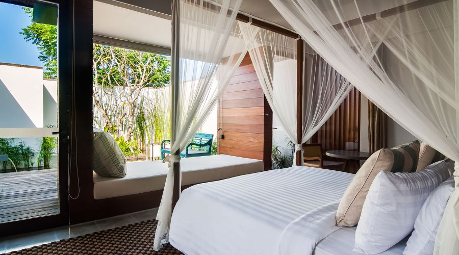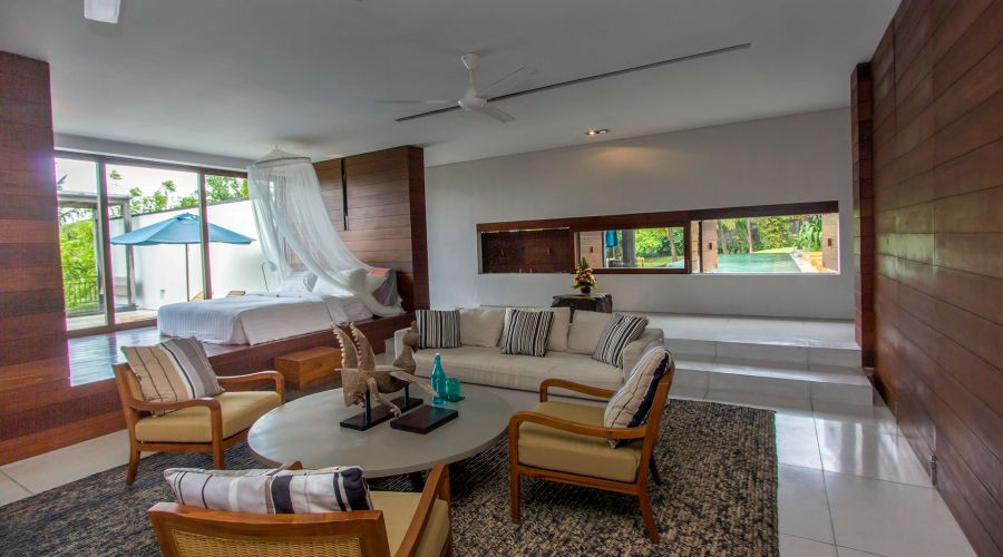 Located under the Master Villa, the large 50 sq m Guest Bedroom with its own separate entrance is an oasis of quiet and calm. It has its own exclusive verandah and private garden.