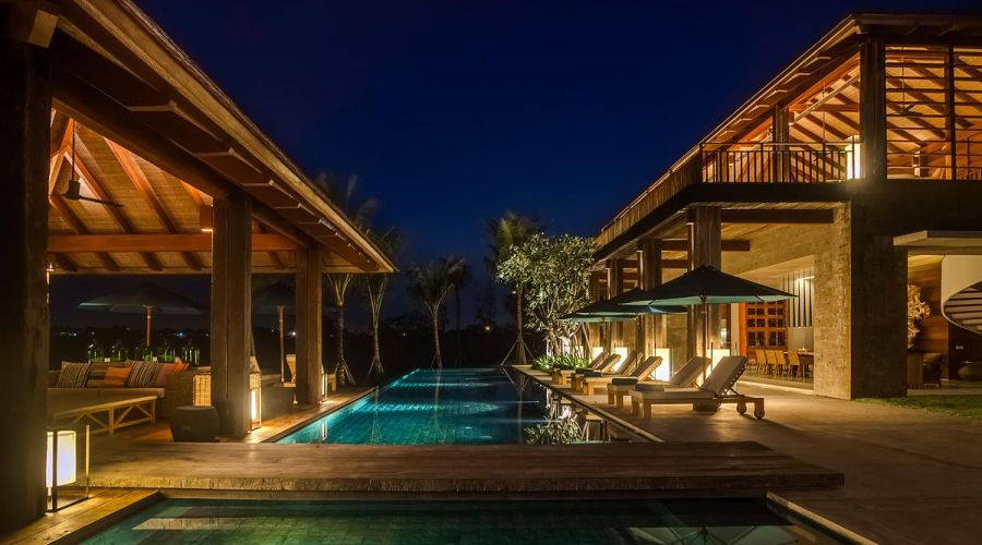 Designed by Ernesto Bedmar – one of South-east Asia’s leading architects for private homes – the 6 bedrooms 1500m² villa is set on 5,900m² of beautifully landscaped land at Cemagi, Canggu Bali. The complex comprises a two storey main pavilion for common living and dining areas that opens out to the 25-metre infinity pool.