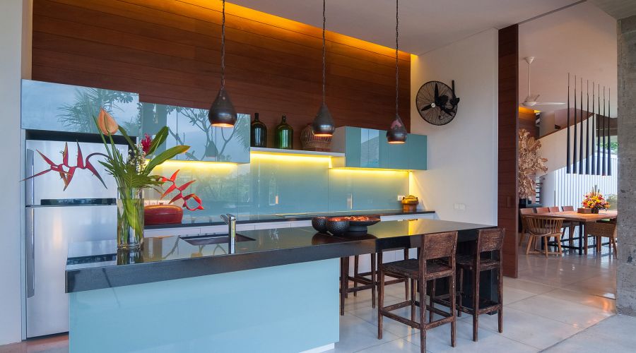 The villa has its own nine-metre long infinity pool and sun deck. Superb views can be enjoyed from the balcony, including Bali’s picturesque sunsets over the ocean.