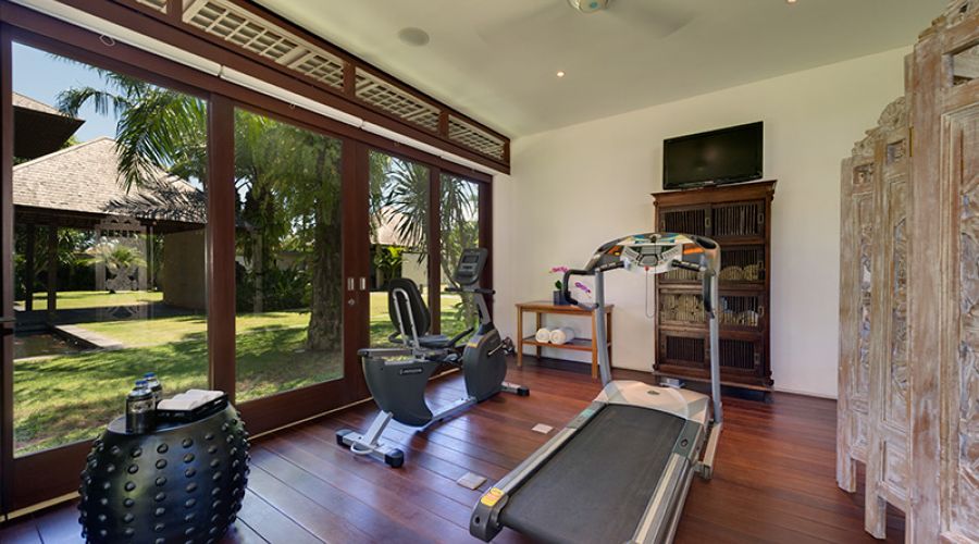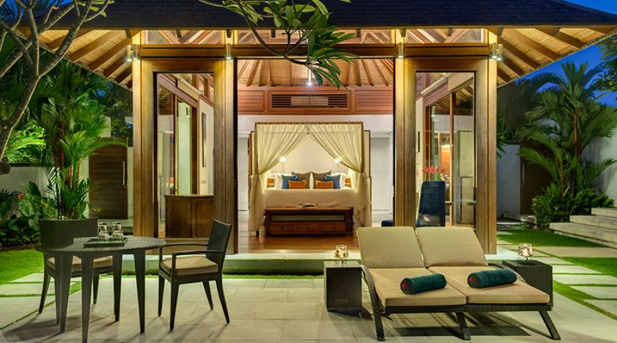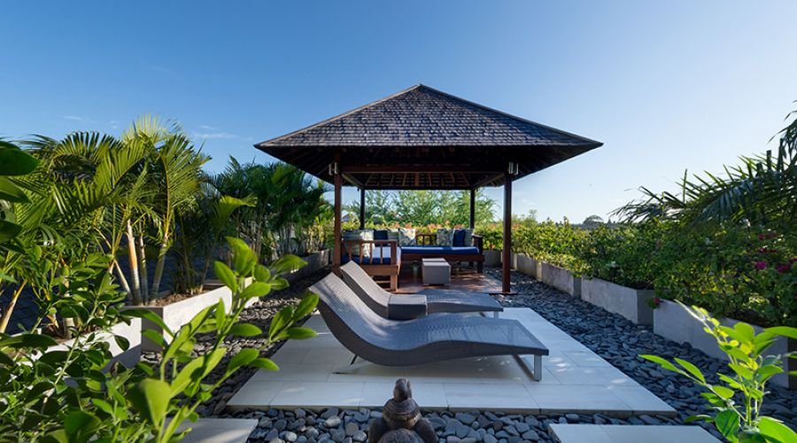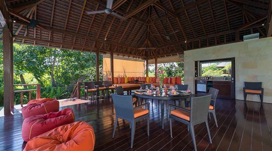 A very private master suite with its own plunge pool, sun deck and garden balé can be added as an optional fifth room. A reading balé, gym and massage room with outdoor bath, a library with 50-inch plasma TV, a games room complete with pool table, and a sun deck hidden below the pool provide ample opportunities for relaxation. There’s also a stunning open sitting area that overlooks the rice fields, a separate air-conditioned dining room with a table that seats up to 20, a pool pavilion for outdoor dining and a large infinity-edge pool, both situated to catch the fabulous Bali sunsets.