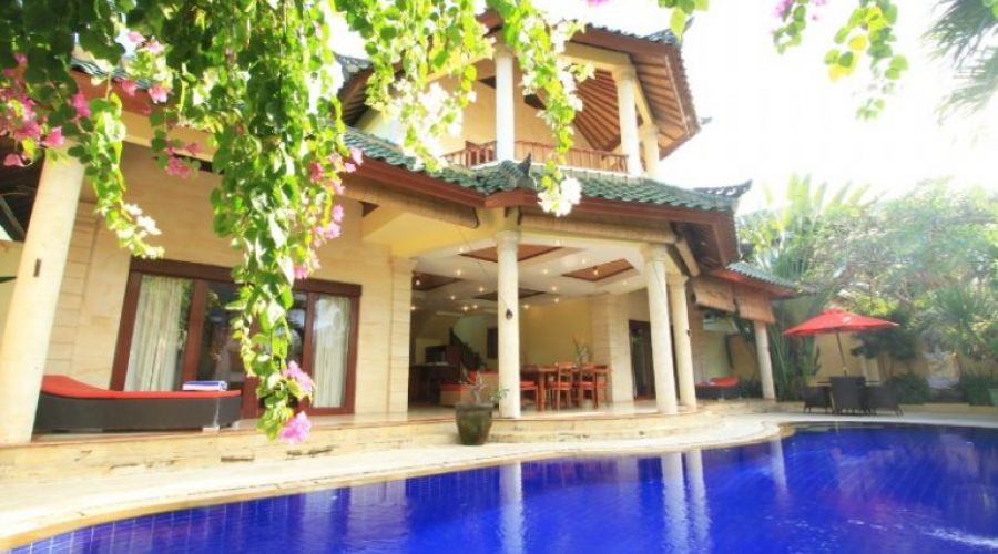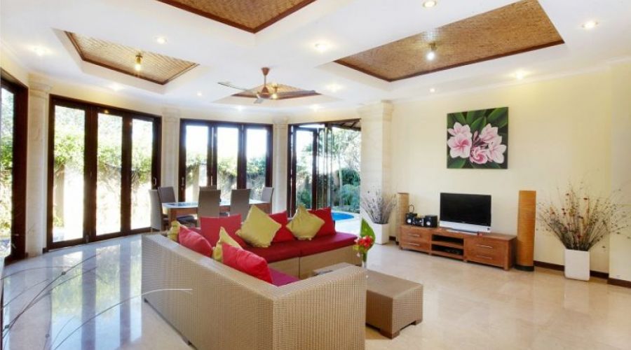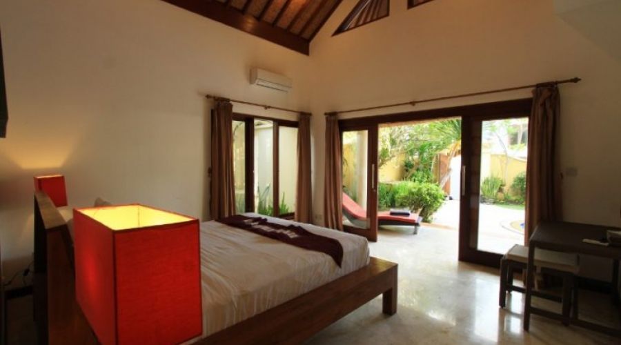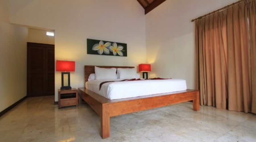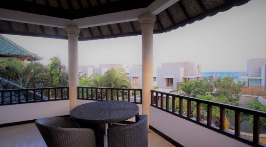 This 3 bedrooms villa is a spacious Balinese style villa with 2 bedrooms downstairs and a master bedroom upstairs with a balcony and a partial ocean view.