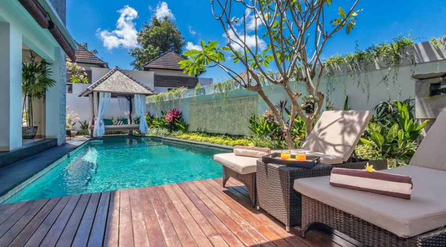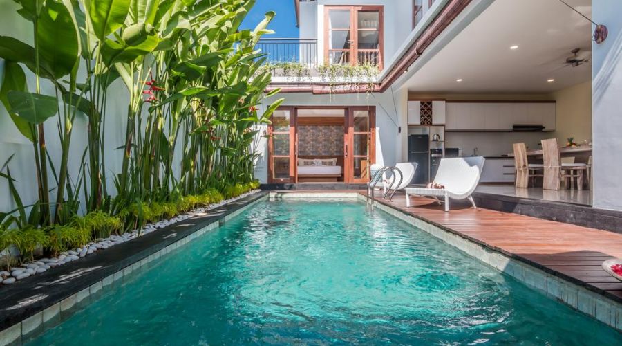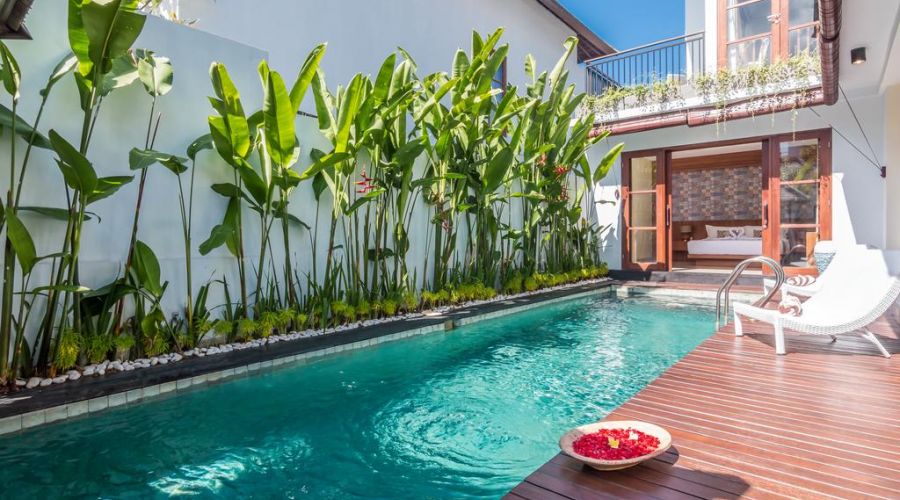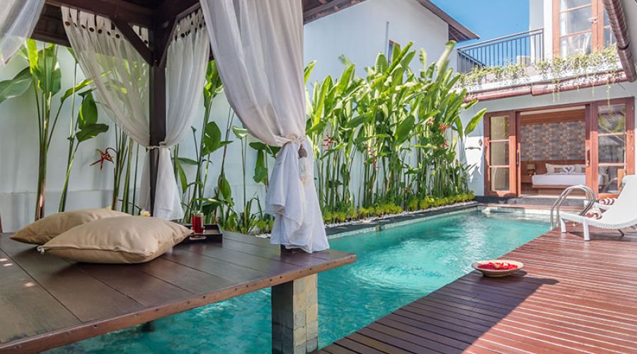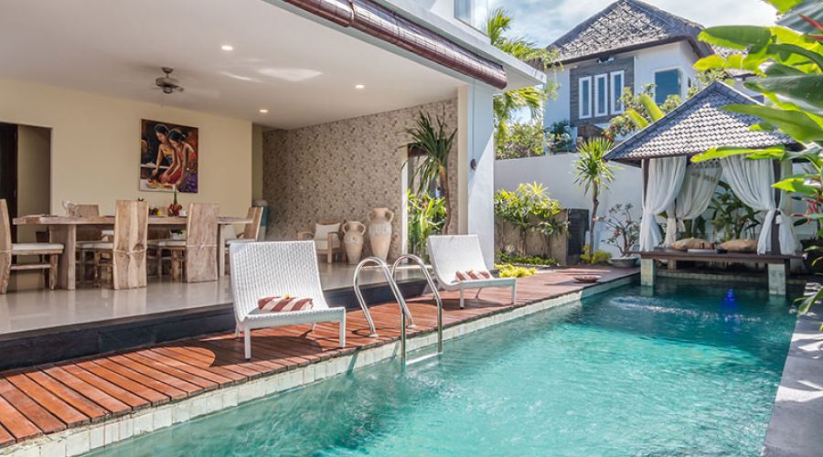 This Villa set in 250 m2 land and blends with tropical garden ambiance with modern private villas stylist comforts to create the perfect holiday retreat on the island of Bali. It is embrace within topical garden compound, complete with its own crystal clear swimming pool facing traditional Balinese pavilion we called it “ Bale Bengong”, for ensure the totally privacy comforts.