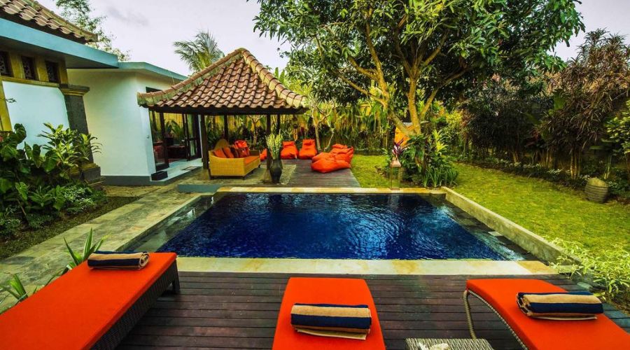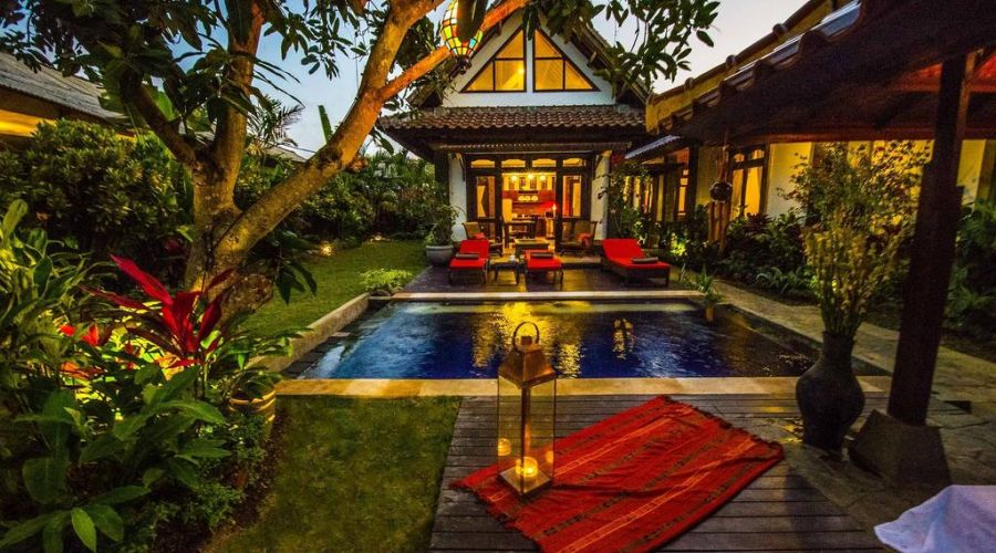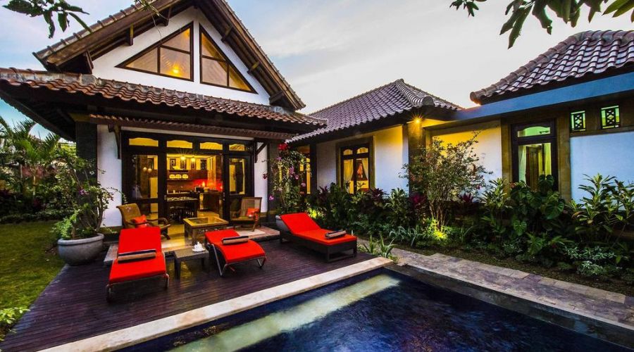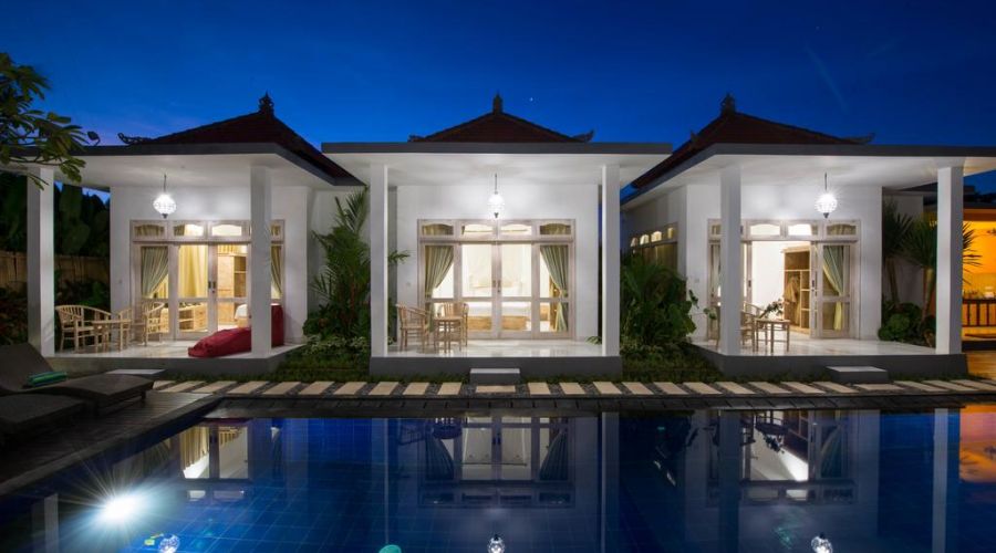 The beautiful accommodation at the villa will provide a separate and semi-open living room with sofa, a well-equipped kitchen, and a dining area. Each bedroom features air conditioning, wardrobe, a flat-screen TV, and an en suite bathroom with shower facility. Guests can also opt to spend a quiet afternoon sunbathing at the patio by the pool.