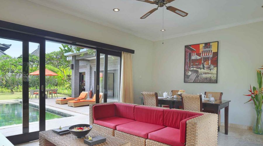 The villa is the perfect holiday accommodation type for couples or small families travelling with children as the villa has garden as play space and a private swimming pool for your ultimate privacy and relaxation. Swimming pool area that can be easily monitored from the living room.