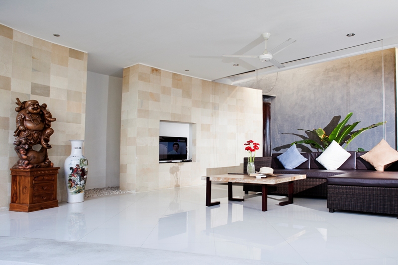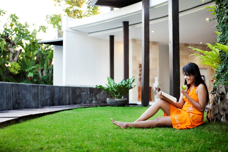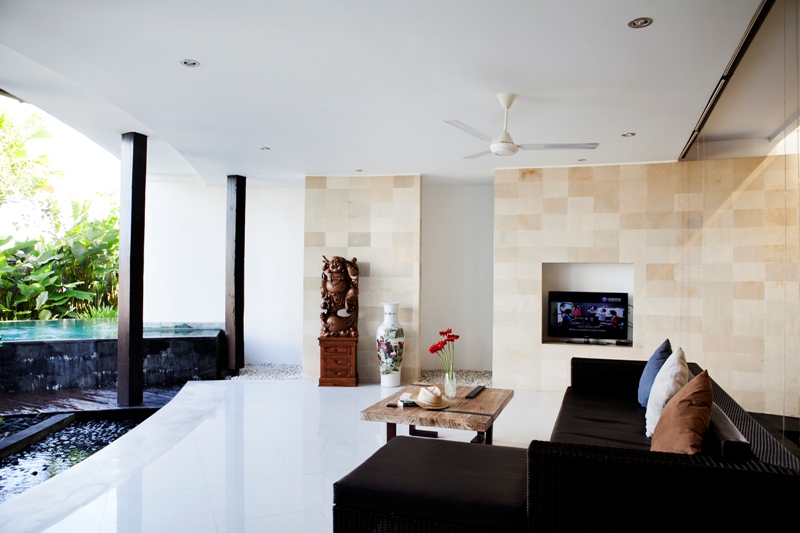While the usual atmosphere of Balinese hospitality industry is kept intact in the villa, the architect who developed the villa optimizes the tropical nature of the island. The entire villa comes with glassy walls to ensure the natural lights flow in as long as the sun is shining.This arrangement creates a refreshing effect for the occupants.The glass walls of its two bedrooms and bathrooms make sure that the greenery of the garden comes in full into view. Such an eye to technical aspect is combined with the aesthetics that transforms the use of elegant colors and textures into an ideal, highly private place.