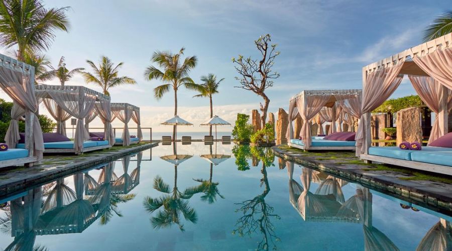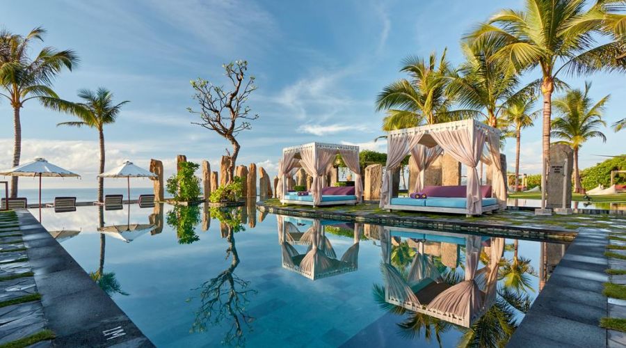 This villa complex is a hidden sanctuary bordered by rice fields, sweetcorn and tobacco plantations, bounded by papaya, banana and coconut groves, and blessed with dramatic coastline views extending to the southern beaches and the eastern mountains.