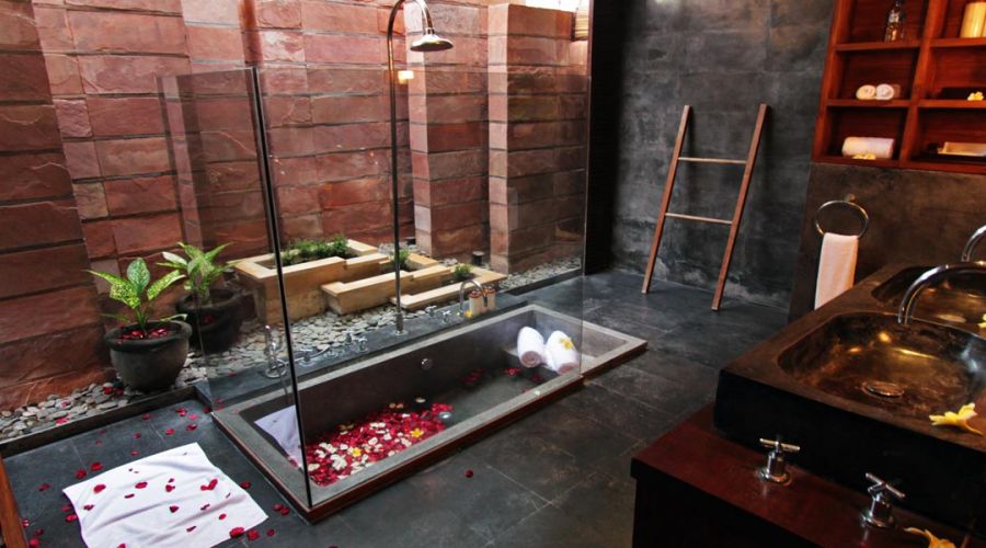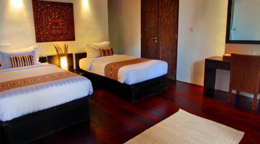This beachfront villa stands on 1800 metre square built up with 3 spacious bedrooms, 2 king bedrooms and 1 twin bedroom along with ensuite bathrooms. Each room equipped with air-conditioning, flat screen TV in Master bedroom, artworks and day beds in each room’s terrace. The Villa boasts of much wood work and modern Balinese interior. All rooms overlook into the ocean. The living area is equipped with 43” flat screen, TV cable and Home Theatre System.