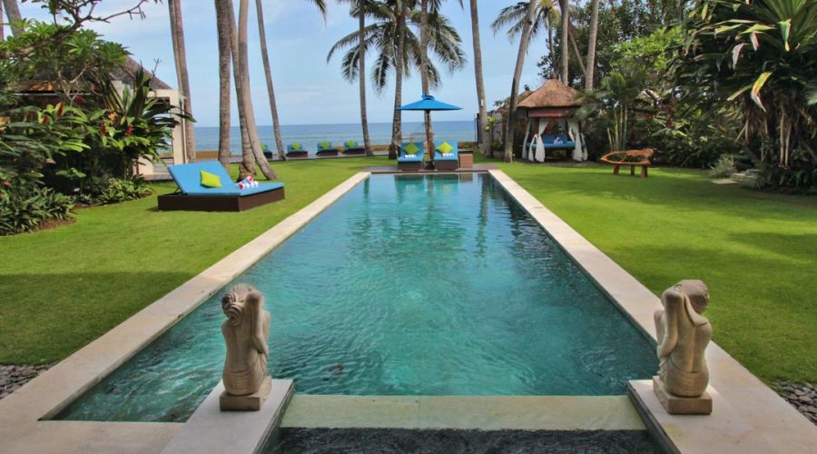 An absolute beachfront Villa, situated in Pabean Beach, Ketewel Bali. Set amidst a tropical landscape and overlooking the ocean, Luxury Beachfront villa gives a perfect serenity with spectacular view of sunrise and mount Agung, Nusa Penida and Lombok Island surrounded by rice paddy fields within millionaire expatriate Villa surrounds.