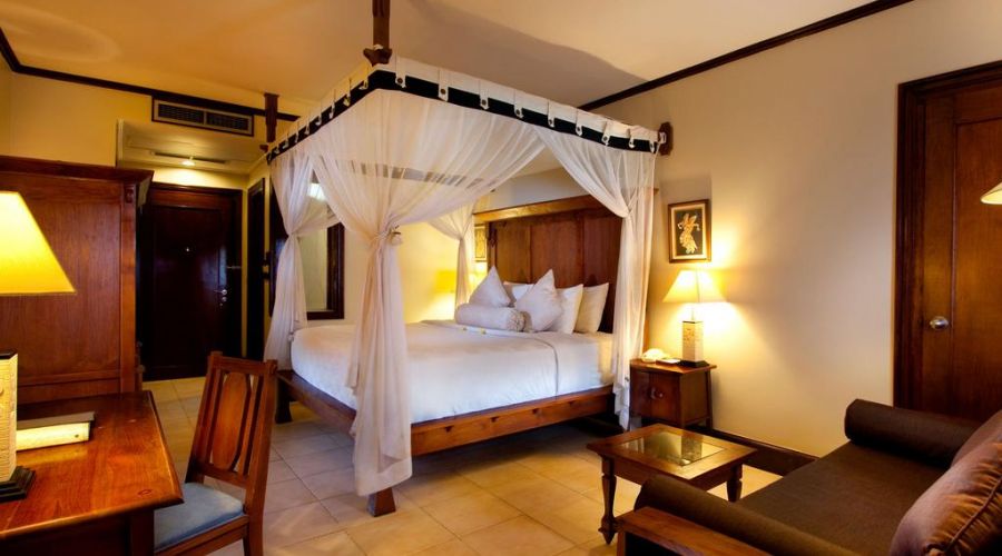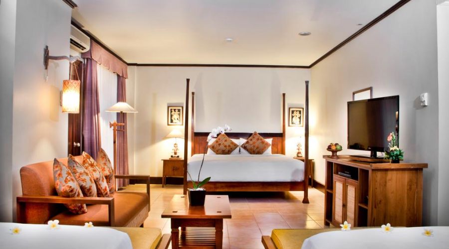 This one delux room is part of a Resort complex is located less than 10 minutes’ walk from the centre of Kuta. Decorated in a modern Balinese style, and villas come with a private balcony overlooking the