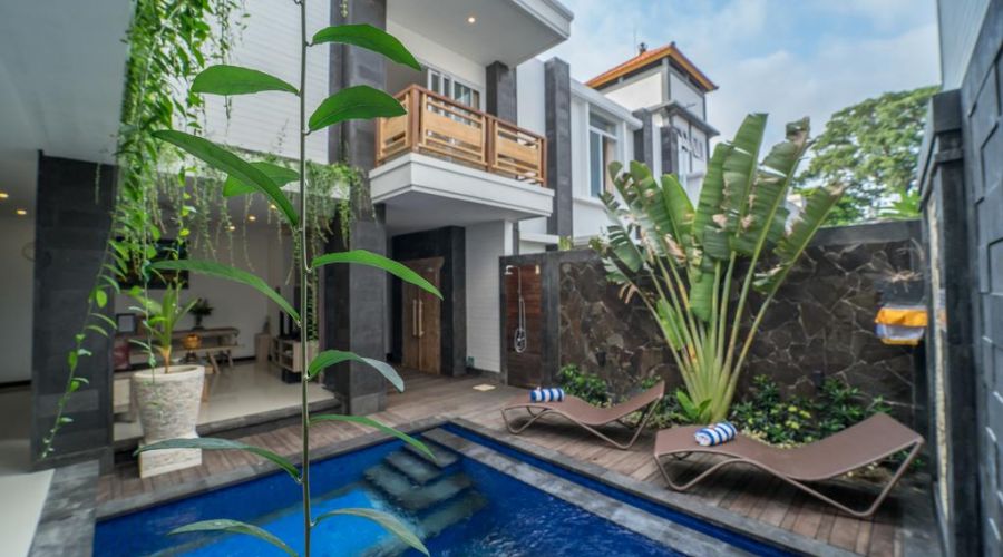 This brand new luxury twin villa is located in the middle of Legian, the heart of Kuta. You are only steps away from the famous Legian Road with its hundreds of shops, restaurants, bars and clubs. The sands of Kuta beach are only 10-minute walk away.