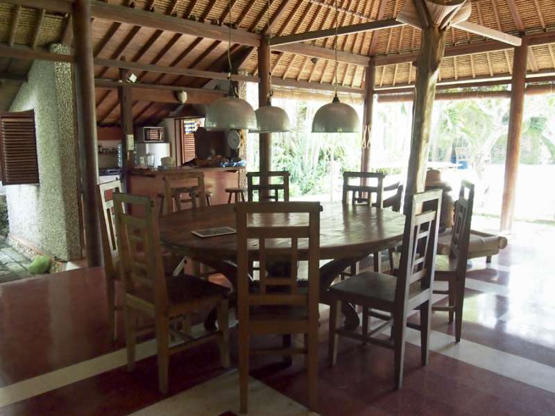 The Villa is located in the heart of Legian just 75 meters off the beach on 3000 square meters (3/4 acre) of mature garden land...one of the last remaining large parcels in the beach area. The main pavilion and entertainment center is an impressive 175 sq mtrs. The 4 bedrooms are over-sized. One is upstairs overlooking a 25 meter pool. The other three are detached bungalows. One of these is for kids with 4 beds (two bunk beds). There are two kitchens...a service kitchen in the main pavilion and a main garden kitchen where our cook will prepare dinners.