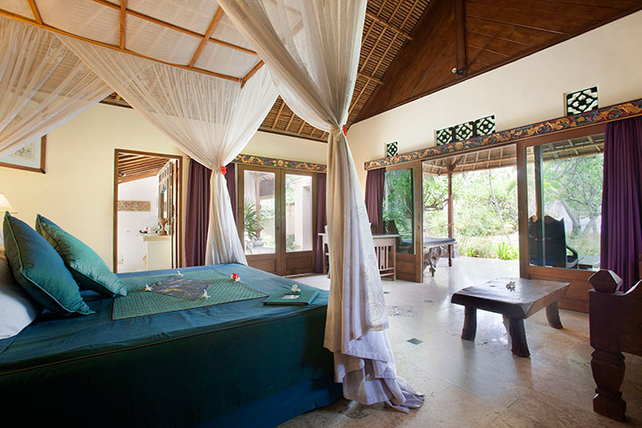 On the beach front, the beach front resort offers an experience of six suites, each with its own character and individually decorated with antiques and art. Two of our suites have a second floor with a terrace overlooking the ocean and the nearby mountains, while the others have large intimate terraces. All suites are surrounded by a picturesque lotus pond and have a garden bath where you can enjoy a shower under the open sky.